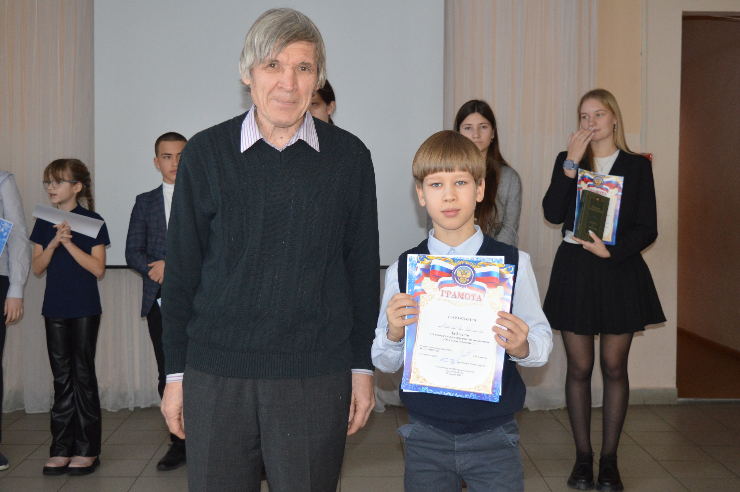 По итогам конференции 2-е место получил Кирилл Морозов, 3-е место получили Тимофей Рузаев и Варвара Тимонина. Все участники получили благодарности за выступление и подарочную книгу.