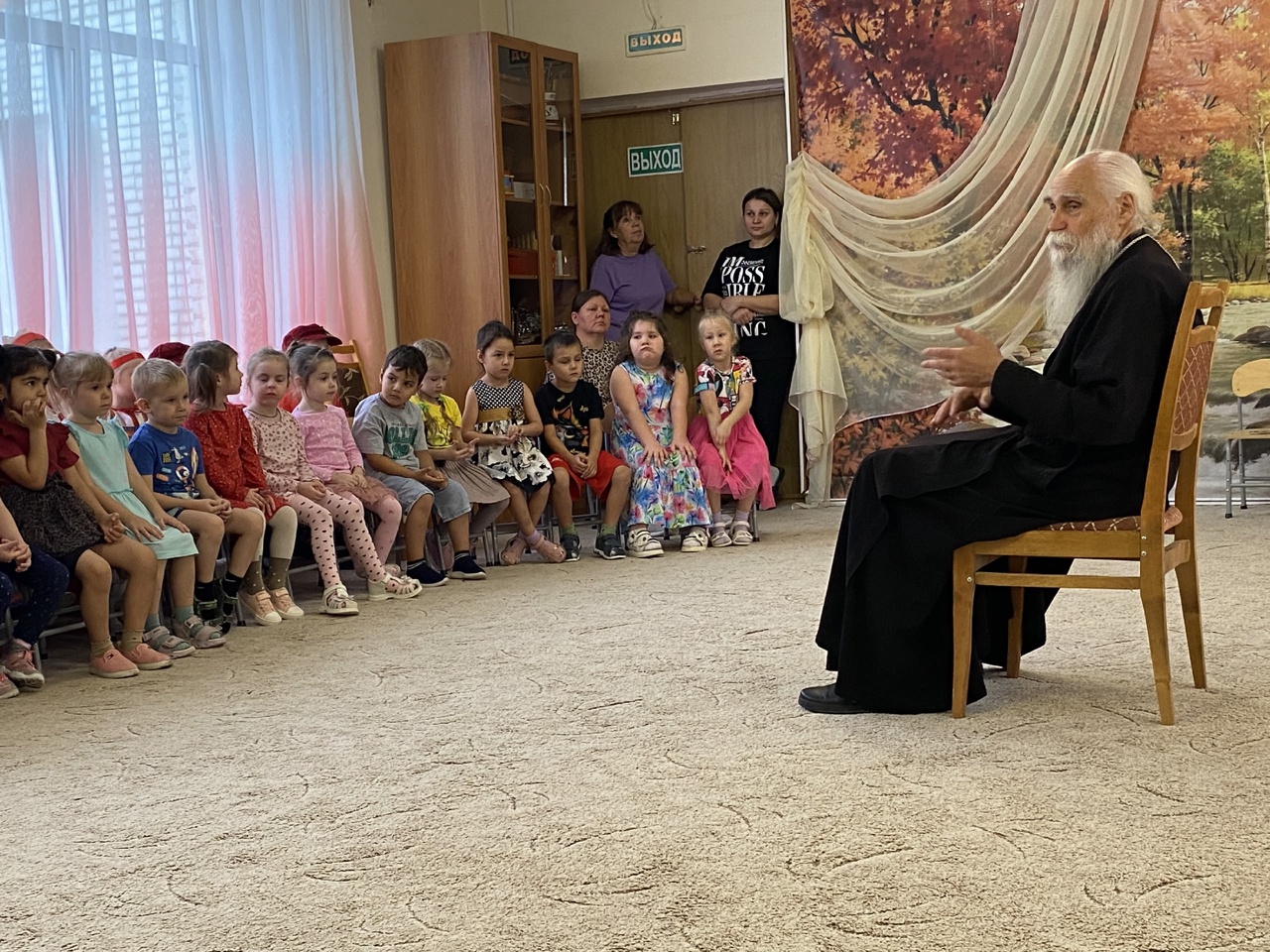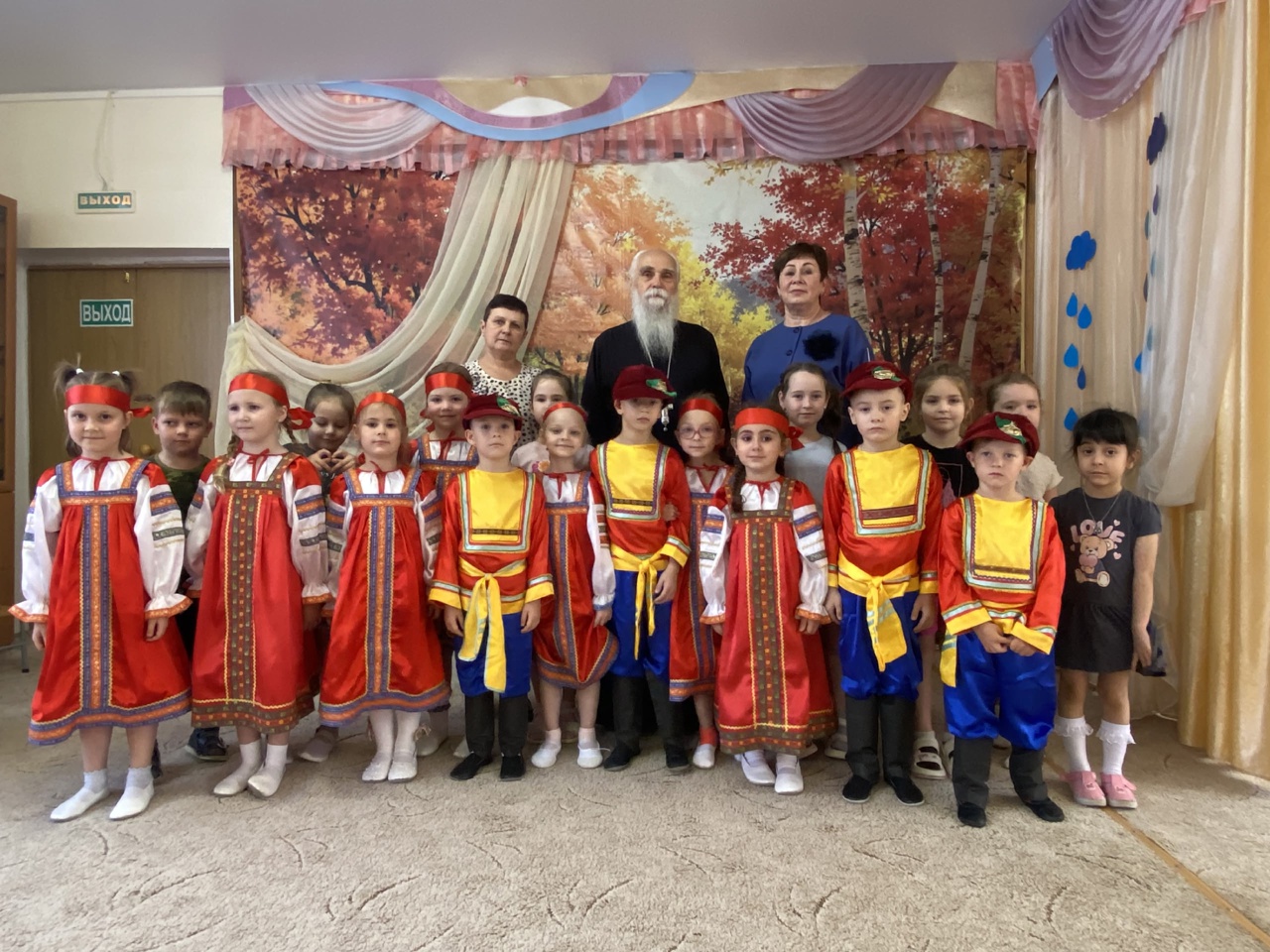 14 октября, в рамках социального партнёрства по духовно - нравственному воспитанию, настоятель храма Всех святых в земле Российской просиявших протоиерей Роман Сыркин посетил структурное дошкольное подразделение "Карусель" МОУ "Лицей № 23" города Белоозёрского. Состоялась традиционная встреча с воспитанниками старшей и подготовительной к школе групп, посвященная православному празднику Покрова Пресвятой Богородицы. Дети готовились к этому праздничному мероприятию, исполнили стихи и музыкальный номер. Из познавательной беседы с отцом Романом узнали об истории праздника, помощи и заступничестве Пресвятой Богородицы. По окончании встречи батюшка пожелал детям и сотрудникам заступничество Божьей Матери, а дети подарили ему на память поделку «Осенние дары», сделанную своими руками.