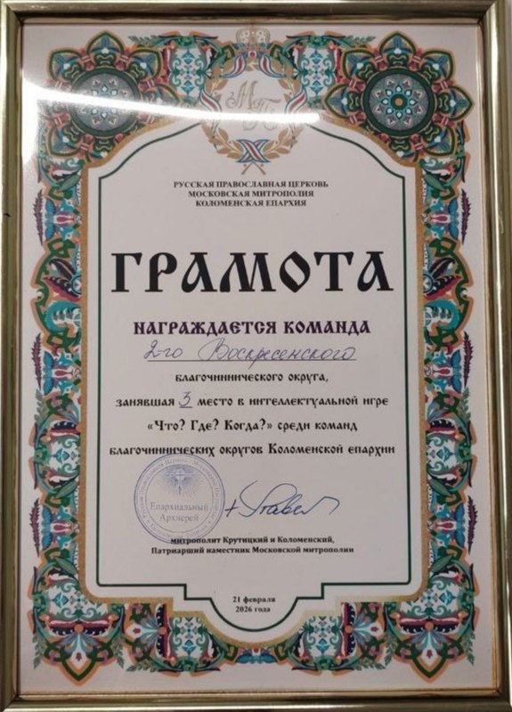 Выпускники и волонтёры клуба "Странники" 21 февраля приняли участие в игре "Что? Где? Когда?" среди команд Благочиннических округов Коломенской епархии. В игре приняли участие 19 команд.