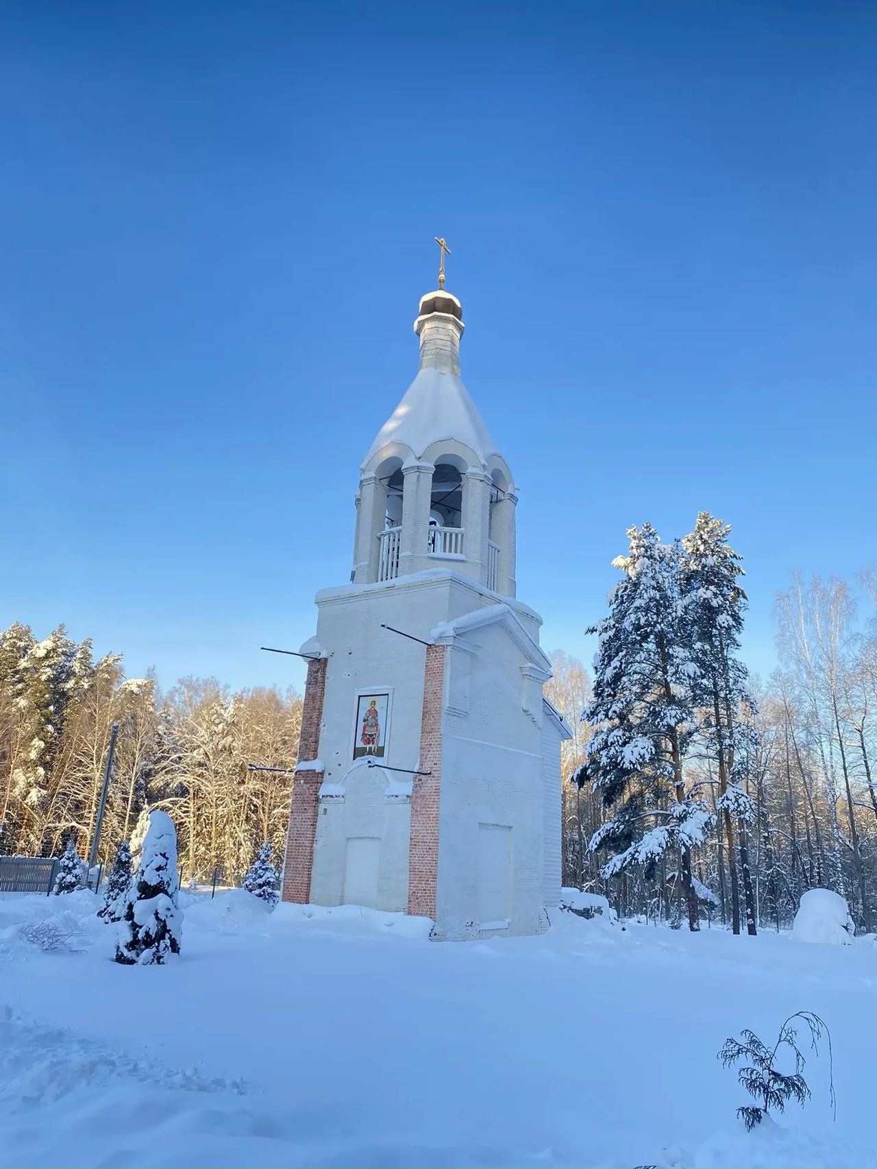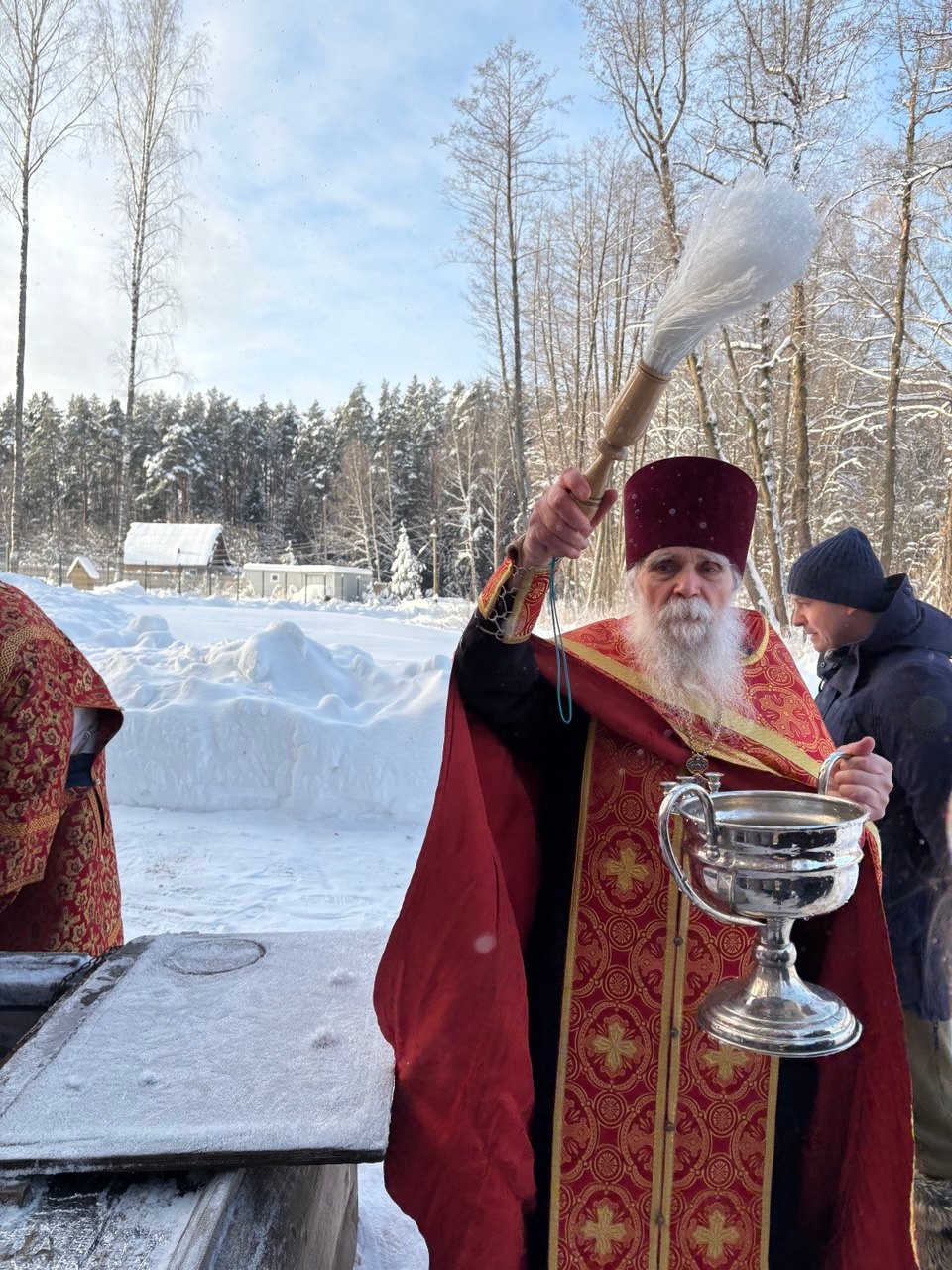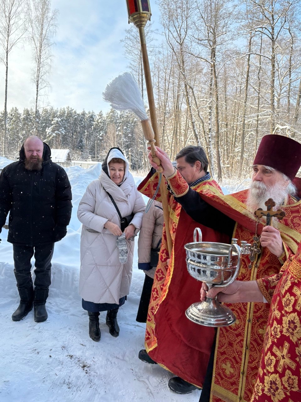 Затем под колокольный звон прихожане прошли торжественным Крестным ходом на местную "Иордань", к реке Дорка. Праздничные звоны во время крестного хода исполнил Василий Сюсин, ученик школы колокольного звона при храме города Белоозёрского. Юному звонарю исполнилось 10 лет. После освящения воды в реке и в колодце отец Роман окропил святой водой присутствующих,  и все довольные и счастливые вернулись в храм.
