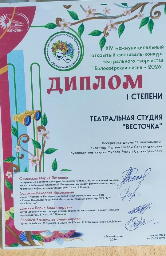 Спектакль уже представлялся на этом фестивале два раза, но в этом году сценарий спектакля дополнили. Сам фестиваль также претерпел изменения. Когда-то членами жюри были работники ДК "Гармония", а в этом году жюри - профессионалы высокого уровня, поэтому полученная награда, диплом I степени, особенно почётна.