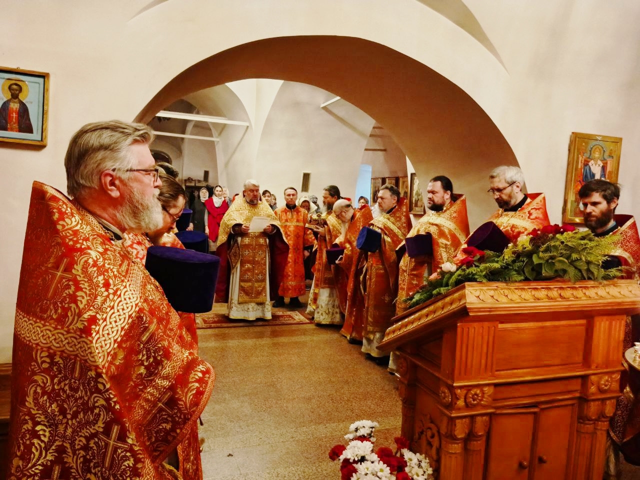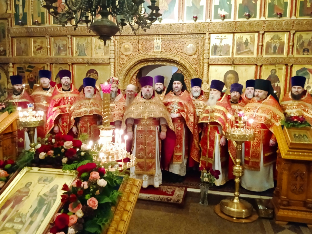 По окончании богослужения благочинный протоиерей Сергий Рыбаков обратился к прихожанам с пастырским словом, в котором поздравил молящихся с днем памяти Собора новомучеников и исповедников Воскресенских, призвав верующих помнить и чтить наследие новомучеников и исповедников Церкви Русской, а причастников — с принятием Святых Христовых Таин.