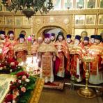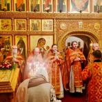 На сугубой ектении была вознесена молитва о Святой Руси, которую по благословению Святейшего Патриарха Московского и всея Руси Кирилла совершают во всех храмах Русской Православной Церкви. По окончании литургии состоялось славление Собору новомучеников и исповедников Воскресенских.