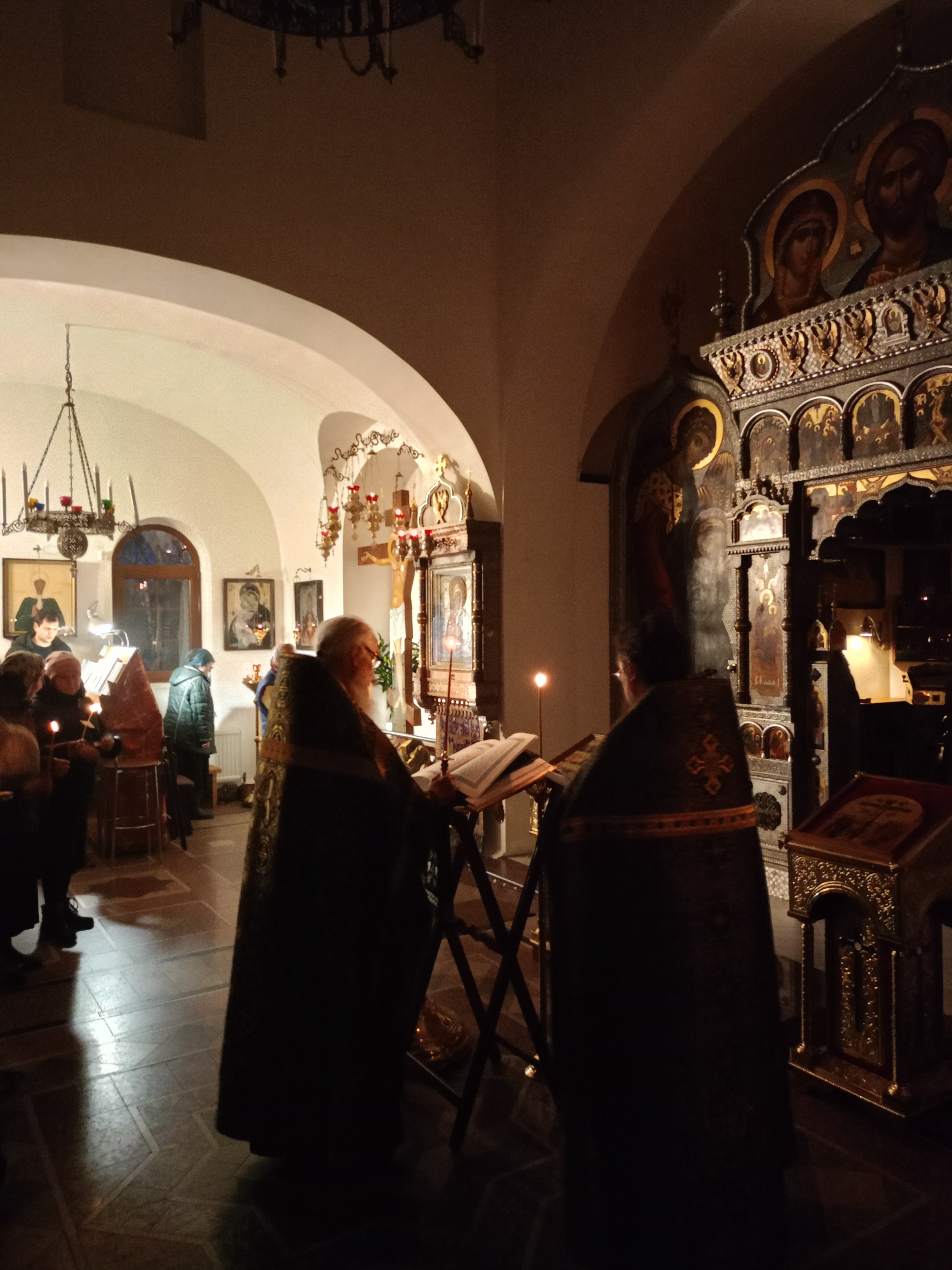 Вечером Великого Четверга, 9 апреля 2026 года, протоиерей Роман Сыркин и иерей Виталий Глазов совершили утреню Великой Пятницы с чтением 12-ти Страстных Евангелий.