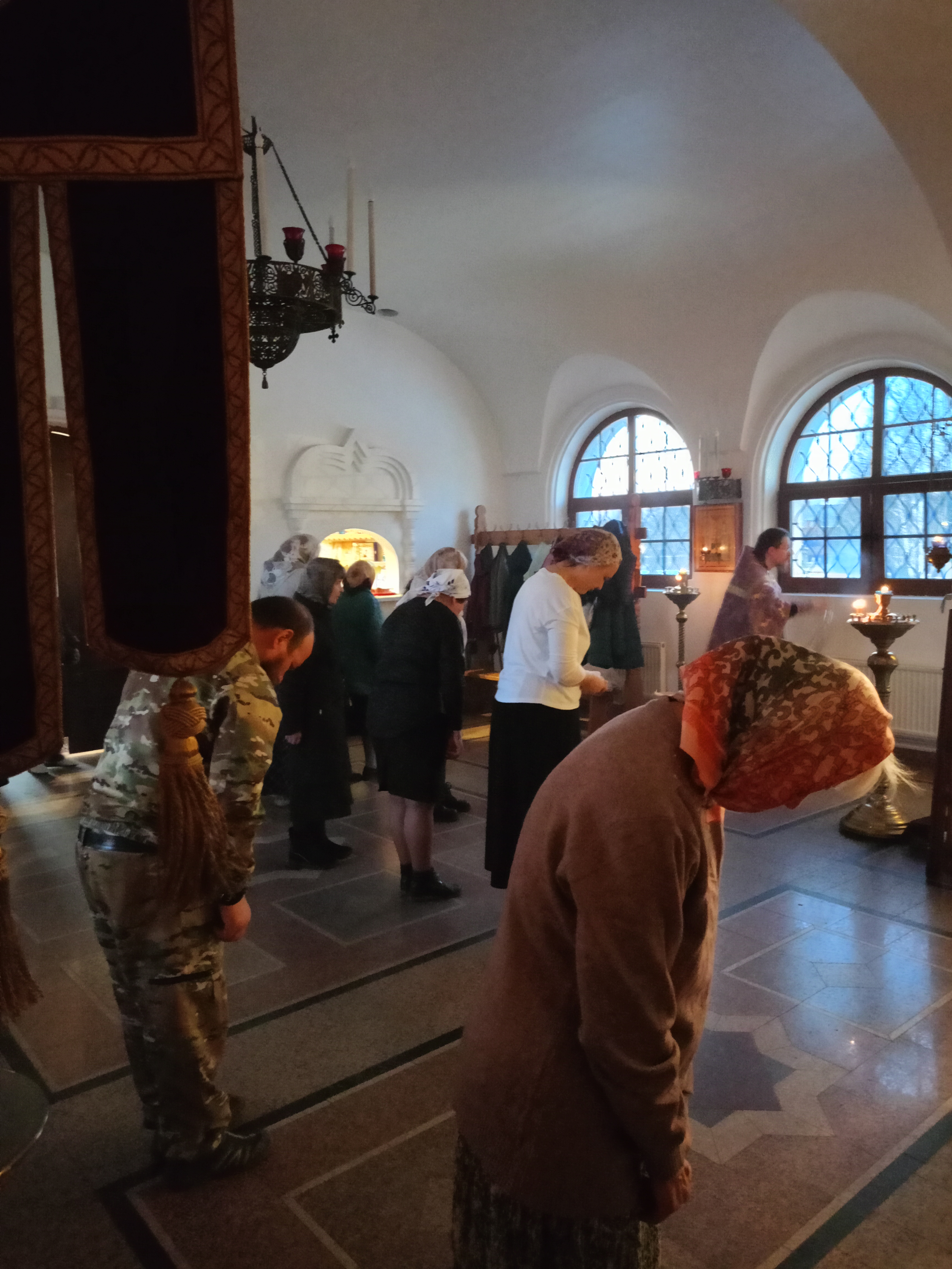 25 марта, в среду вечером пятой седмицы Великого Поста в храме состоялась вечерня и утреня с чтением жития преподобной Марии Египетской и великого канона преподобного Андрея Критского. Это одна из самых продолжительных служб, которая бывает только один раз в году, ее ещё называют Марииным стоянием. Полностью Великий канон преподобного Андрея Критского прочел отец Виталий. Это 250 тропарей, это частые земные поклоны при словах «Помилуй мя Боже, помилуй мя..». Читалась с поклонами и молитва прп.Ефрема Сирина. Однако важно помнить, что Господь смотрит прежде всего на сердце человека, на его молитвенный настрой, а не на физическую подготовку.