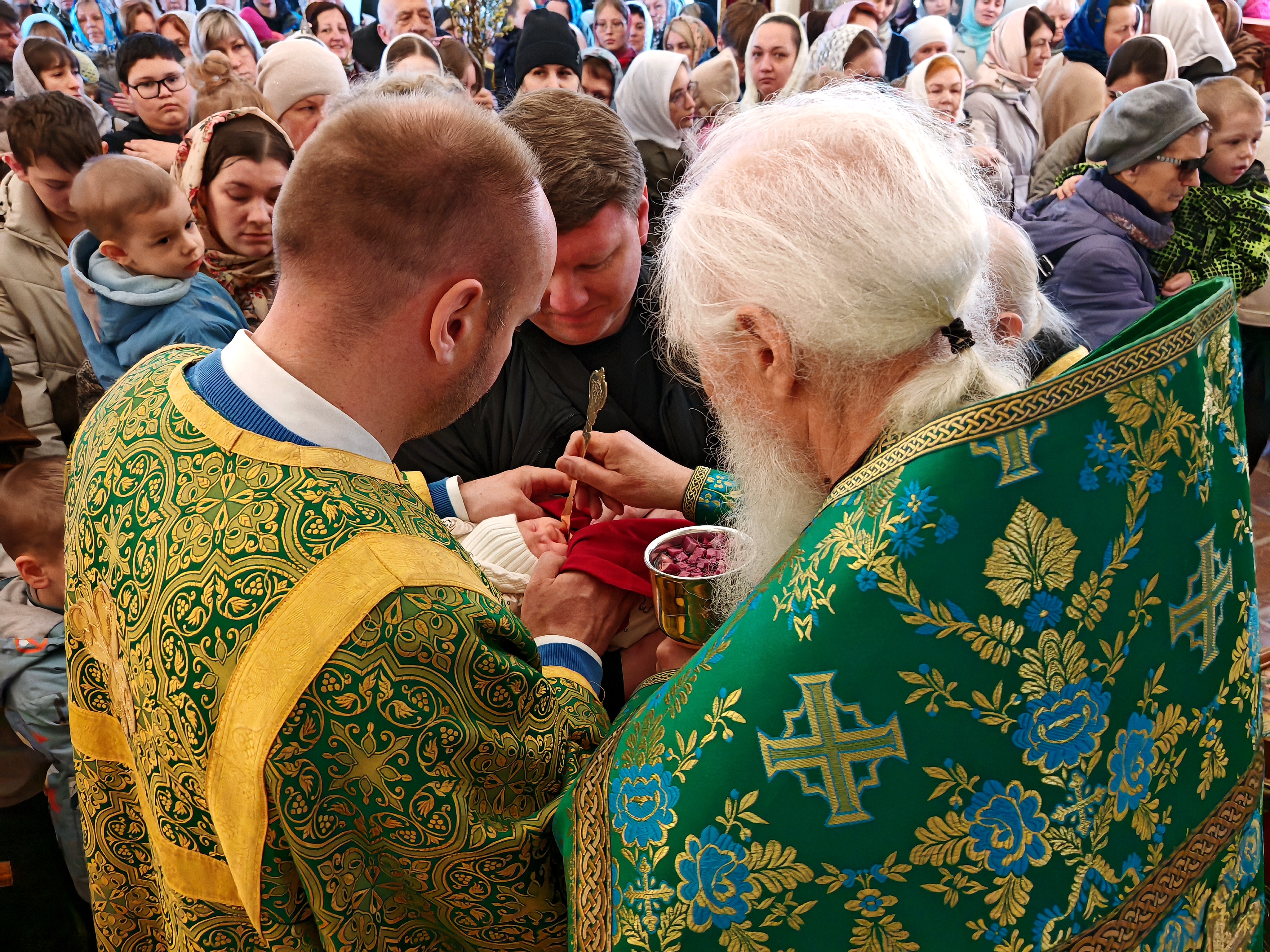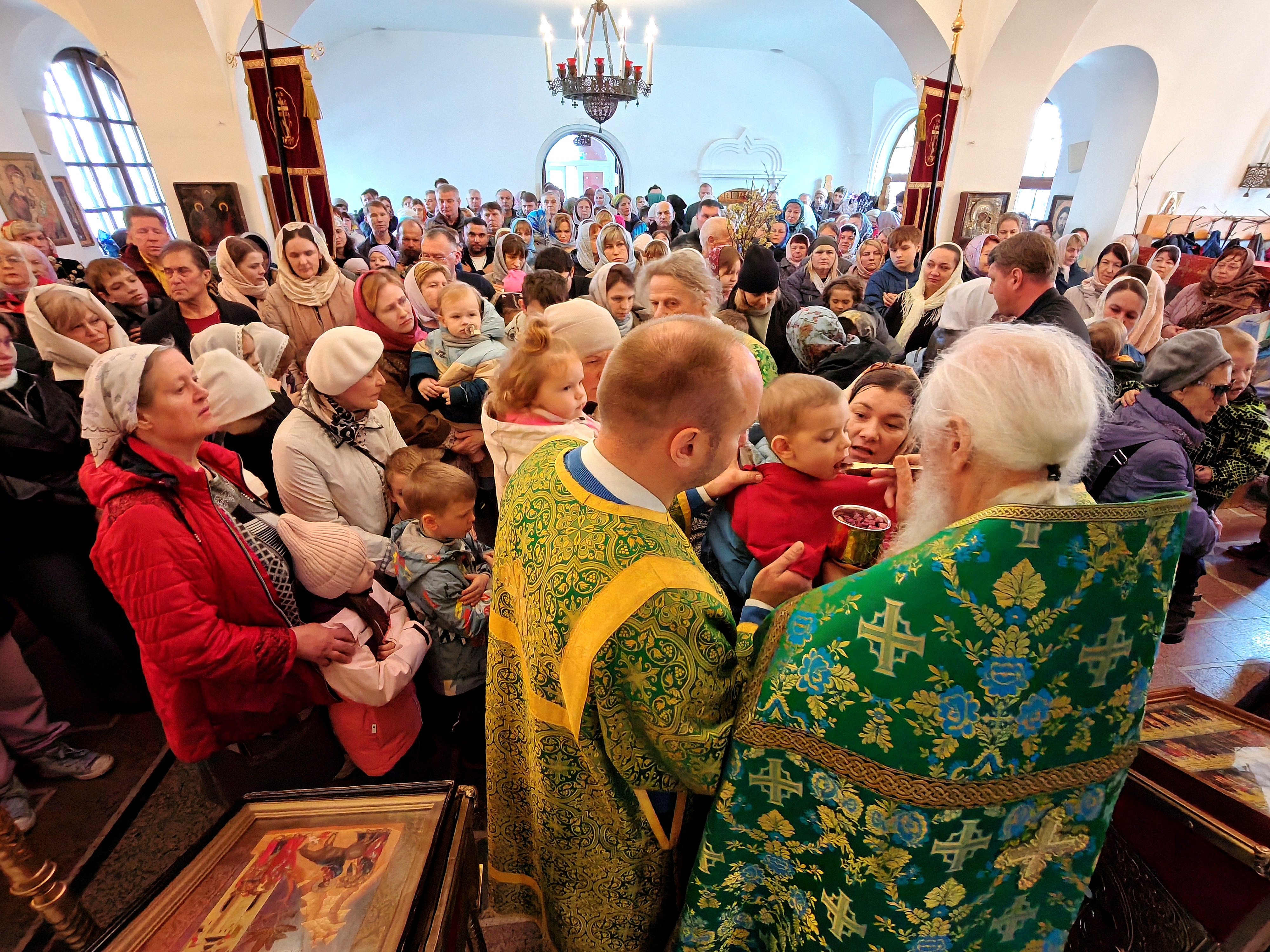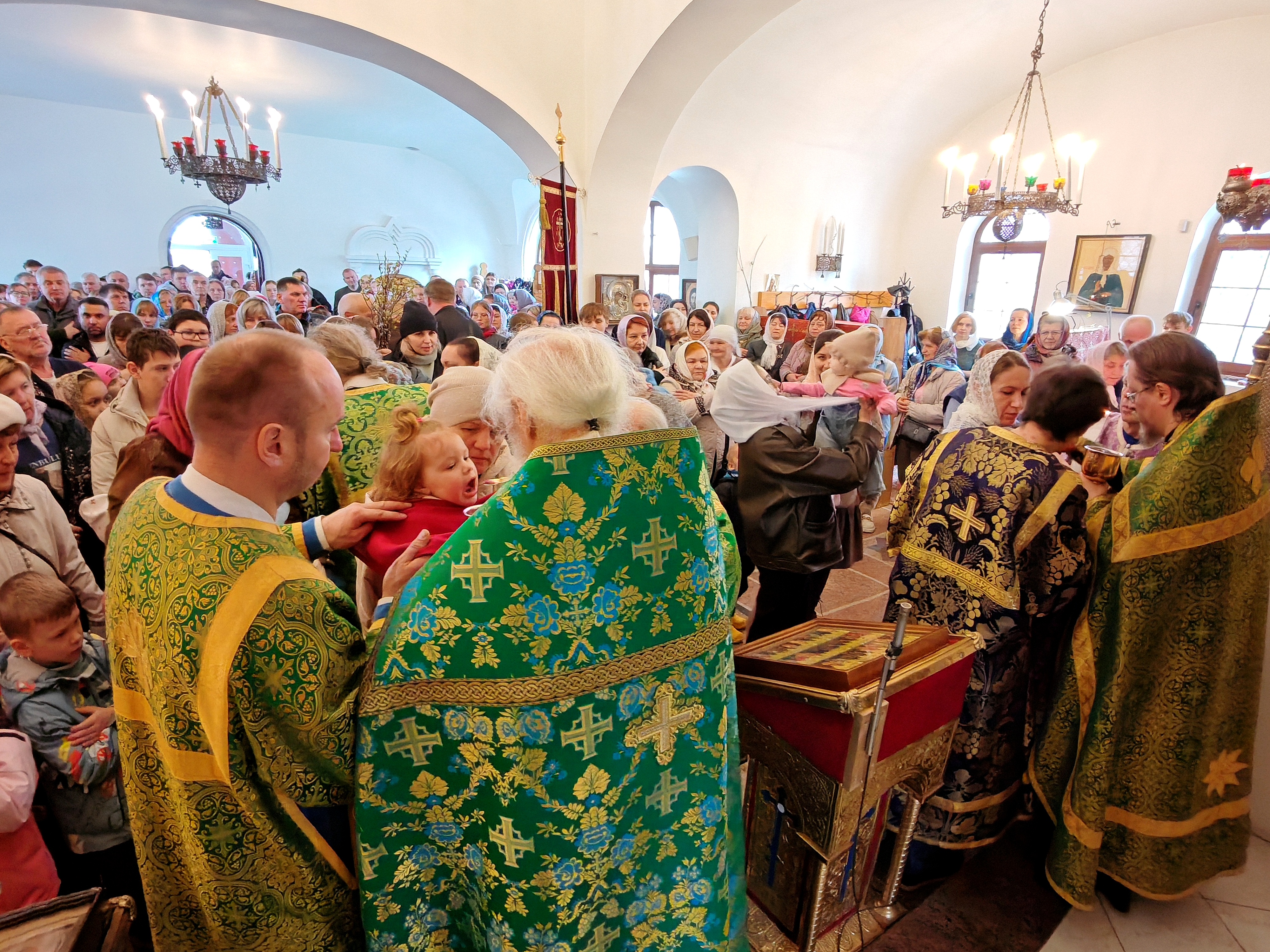 5-го апреля в нашем храме состоялась ранняя и поздняя Божественная литургия. Служили отец Роман и отец Виталий. Накануне вечером состоялось всенощное бдение. В 6-е Воскресенье Великого поста Церковь празднует Вход Господень в Иерусалим. По традиции в этот двунадесятый праздник, в нашем храме, на литургии совершал пение детский хор. В пользу такого прославления Бога детьми, Сам Господь обращается к иудеям: “Разве вы никогда не читали: из уст младенцев и грудных детей Ты устроил хвалу”? (Мф.21:16) И хорошо Он сказал – “из уст”, так как слова их происходили не от разума их, но Его же сила двигала несовершенным еще языком их. Это изображало также и язычников, которые прежде немотствовали, но потом вдруг начинали вещать великие истины убедительно и с верою, - и вместе немало утешало и апостолов. Именно, чтобы апостолы не сомневались, как они, будучи людьми простыми и необразованными, могут проповедовать народам, отроки наперед истребили в них всякое беспокойство и внушили им твердую надежду, что Тот, кто научил отроков прославить Господа, сделает и их красноречивыми. Это чудо показывало также, что Он есть Господь природы. Дети, еще не достигшие зрелого возраста, вещали великое и достойное неба; а мужи говорили слова, исполненные всякого безумия." Святитель Иоанн Златоуст.